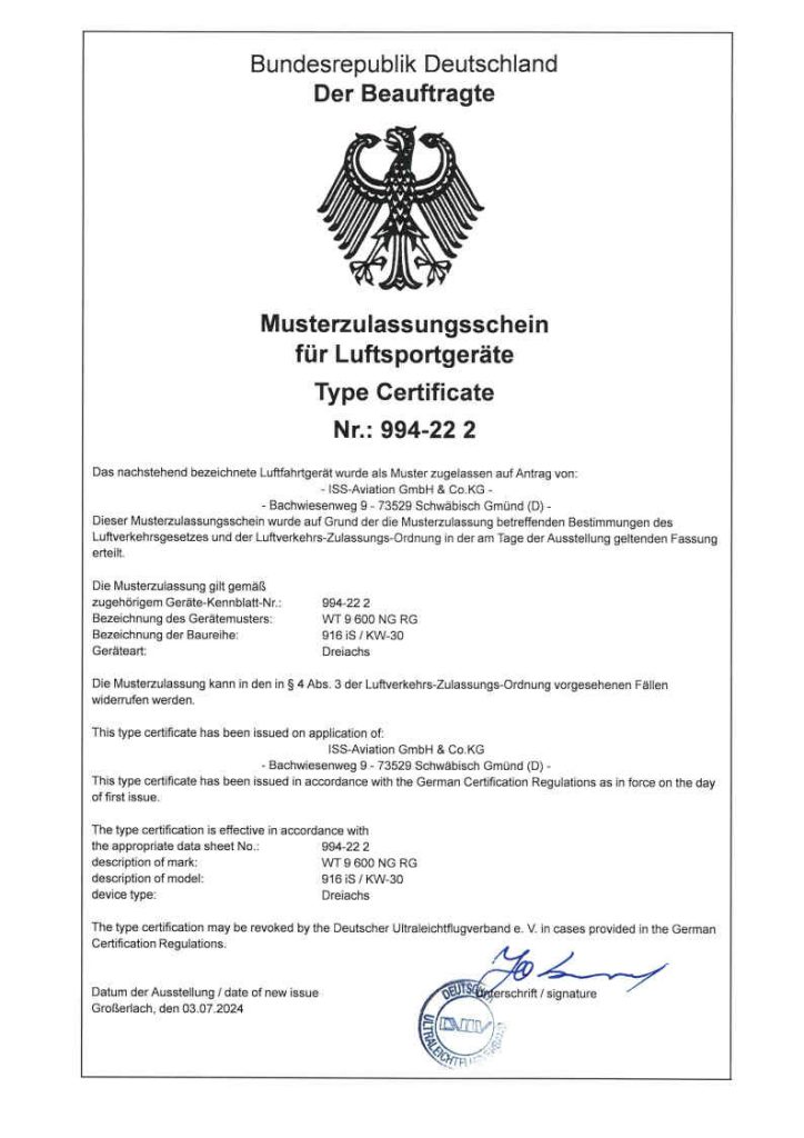 Dynamic WT9, sedme generacije z vgrajenim najnovejšim motorjem Rotax 916 iS je pridobil nemški certifikat, kar pomeni, da ga lahko registriramo tudi v Sloveniji. Še vedno pa čakamo odgovor, oziroma uradno pojasnilo slovenske CAA, kaksni so izgledi glede dovoljenja za vleko jadralnih letal z ultralahkimi letali tudi za potrebe šolanja.